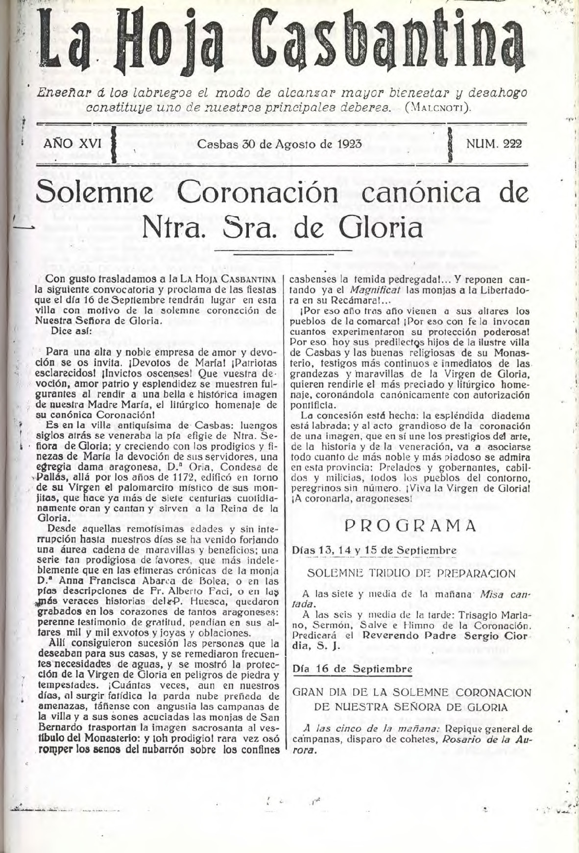 La Asociación Valle de la Gloria se creó en 2018 con el objetivo de llevar a cabo actividades, sobre todo culturales y deportivas, que facilitarán la convivencia y la unión de los siete pueblos del municipio de Casbas de Huesca, situado en la comarca de la Hoya de Huesca de la comunidad de Aragón.