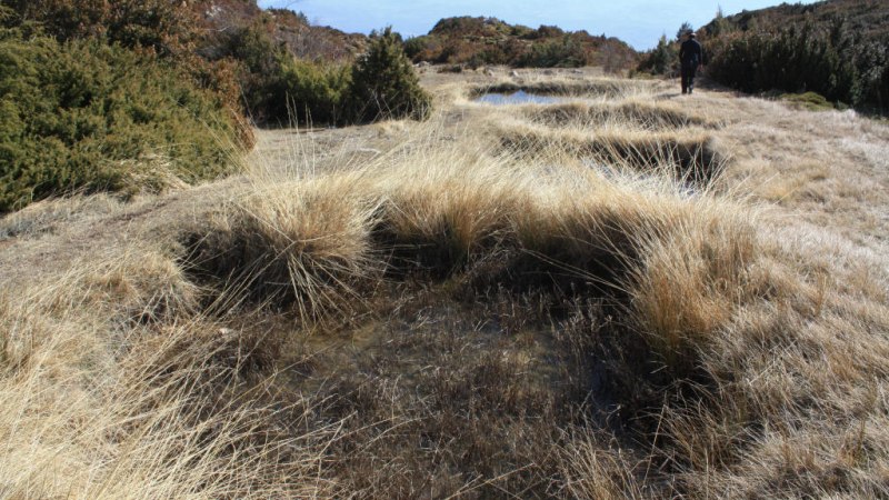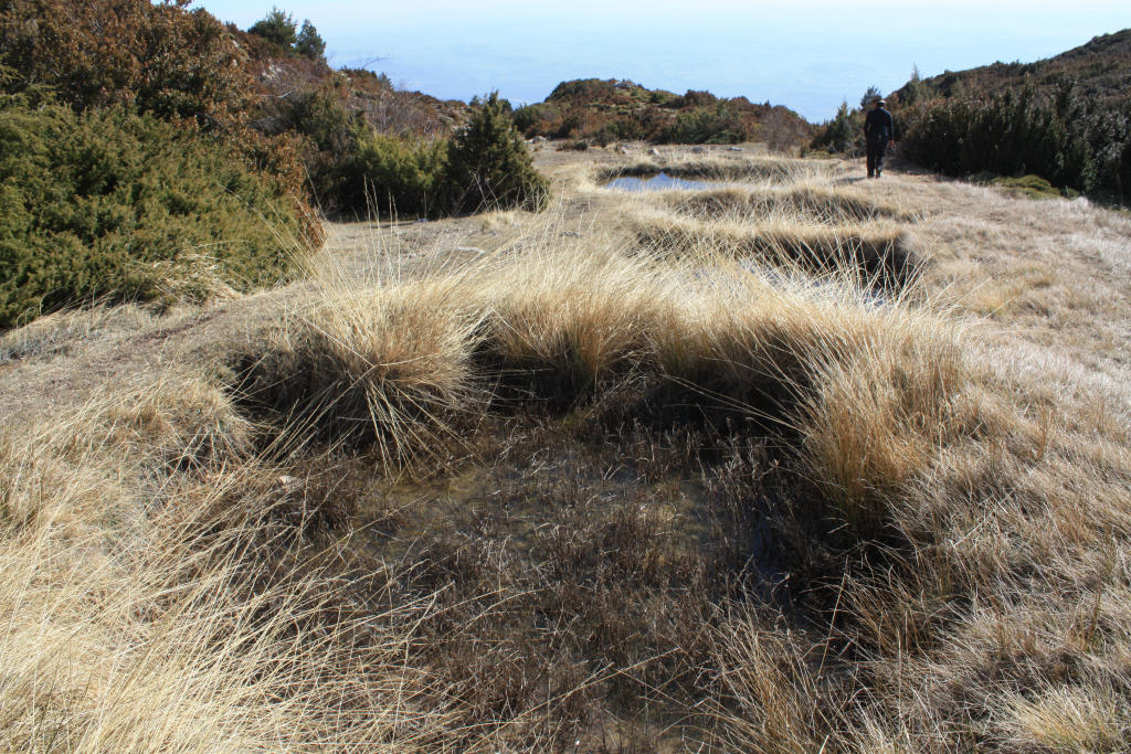 1687m Desde este punto observamos buena parte de los Llanos de Cupierlo, en los que destacan una depresiones circulares que filtran el agua de lluvia que se denominan dolinas. La Dolinas de Cupierlo, también denominadas Hoyos de Guara, ocupan una extensiónde 4km cuadrados entre los picos de Cubillas y el Cabezo, y se pueden contabilizar hasta más de 250. Constituyen un autentico LIG (lugar de interés geológico) por la Red Natural de Aragón.